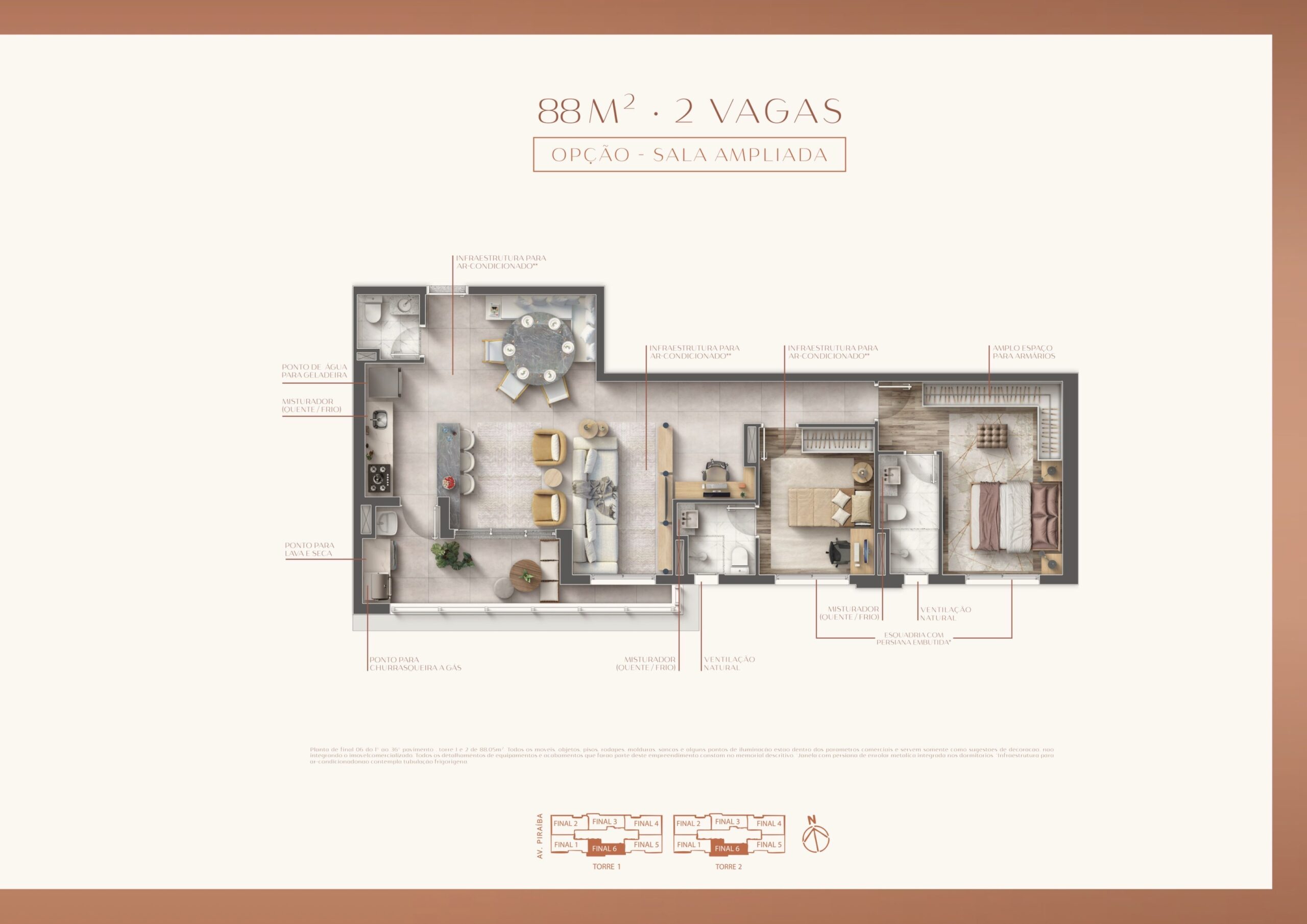 Área Privativa ~119,49 m² ou ~119,75 m²