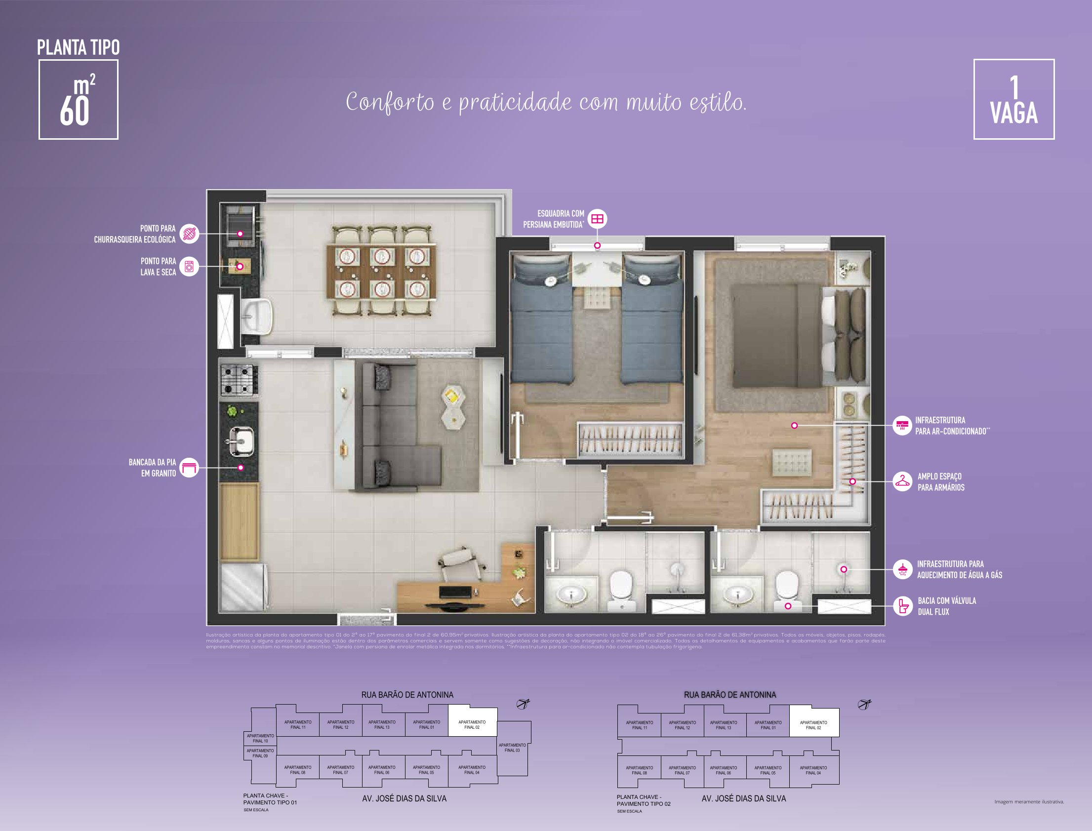 1 ou 2 vagas de garagem (dependendo da unidade)